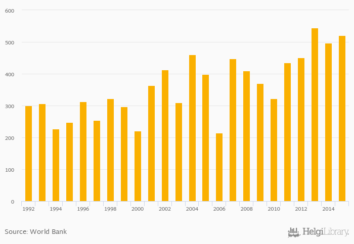 Cereal production rose 4.66% to 521 kt in Armenia in 2015, according to Faostat.