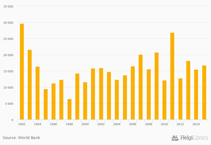 | Kazakhstan | kt | 20,764 | 12,116 | 26,826 | 12,788 | 18,141 | ||||||||||||||||