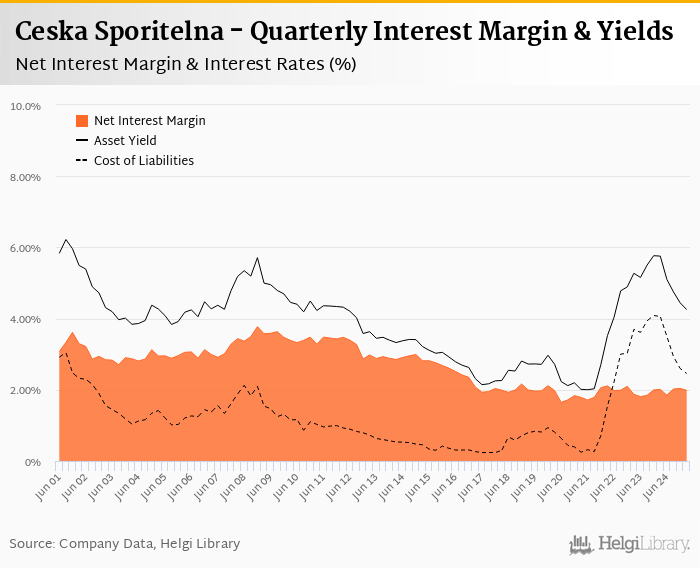 When compared to bank's main peers, CSOB operated in the first quarter of 2025 with a net interest margin of 1.52% and Komercni Banka reached 1.64%.