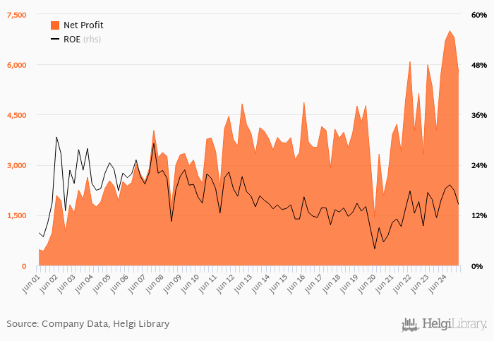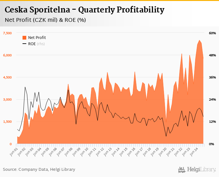 Ceska Sporitelna made a net profit of CZK 5,748 mil in the first quarter of 2025, up 0.402% when compared to the same period of last year. This implies a return on equity of 14.6%.