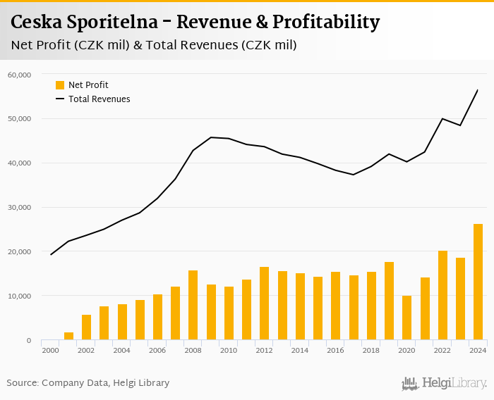 Ceska Sporitelna made a net profit of CZK 26,238 mil under revenues of CZK 56,486 mil in 2024, up 40.5% and 16.8% respectively compared to the previous year.