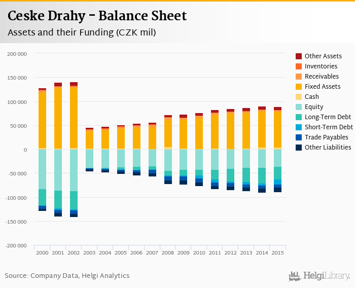 Ceske Drahy's total assets reached CZK 88,792 mil at the end of 2015, down 0.842% compared to the previous year.