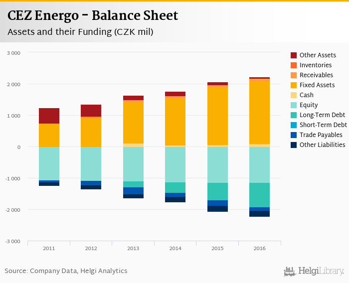 CEZ Energo's total assets reached CZK 2,221 mil at the end of 2016, up 8.03% compared to the previous year.