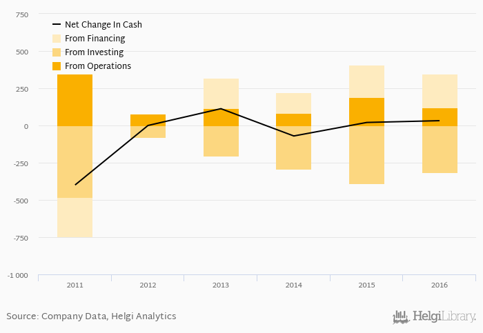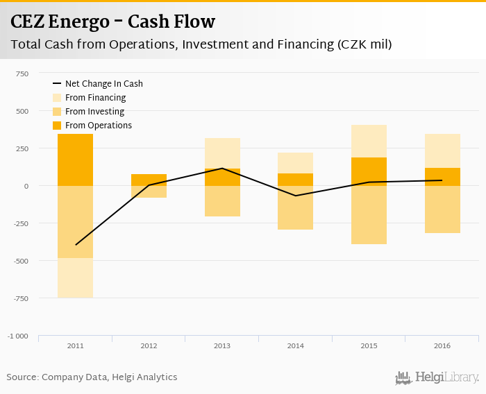 Cash from financing amounted to CZK 225 mil, so the company generated CZK 32.2 mil net cash in 2016.
