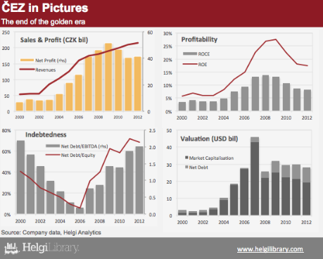 ČEZ is a Czech Republic-based company engaged in the production and distribution of electricity. The Company's core businesses are generation and distribution of electricity, electricity trading, generation and distribution of heat, gas trading, and relate activities. Apart from its domestic Czech market, ČEZ Group operates also in Albania, Bulgaria, Germany, Hungary, Poland, Romania, Slovakia and Turkey. The Czech Republic remained the company’s largest shareholder with nearly a 70% stake at the end of 2012.