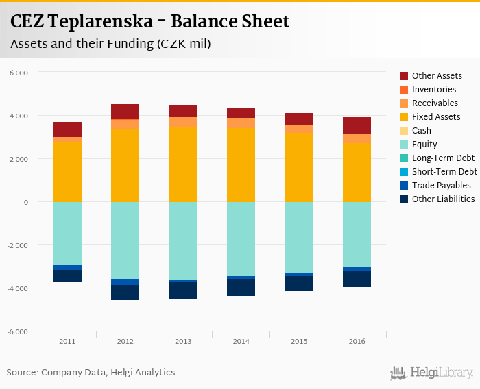 CEZ Teplarenska's total assets reached CZK 3,941 mil at the end of 2016, down 4.7% compared to the previous year.