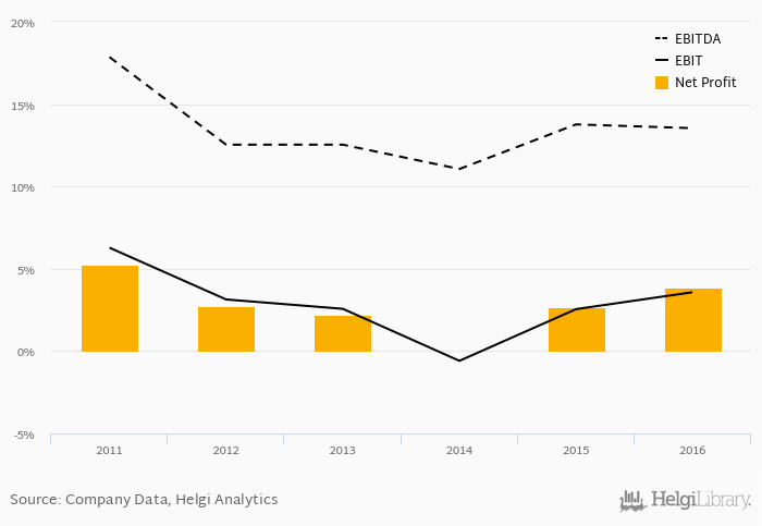 On the operating level, the EBITDA margin reached 13.5% and EBIT amounted to 3.58% of sales in 2016.