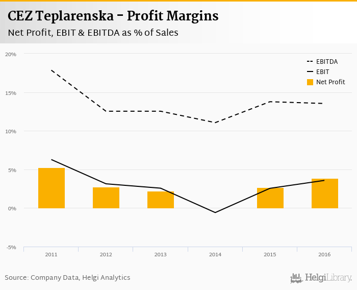 CEZ Teplarenska made a net profit of CZK 115 mil with revenues of CZK 2,961 mil in 2016, up by 40.9% and down by 2.11%, respectively, compared to the previous year.