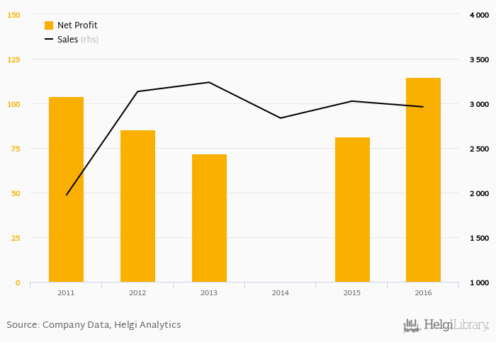 Sales have grown by 8.51% a year on average since 2011. They reached a high of CZK 3,236 mil in 2013 and a low of CZK 1,969 mil in 2011.