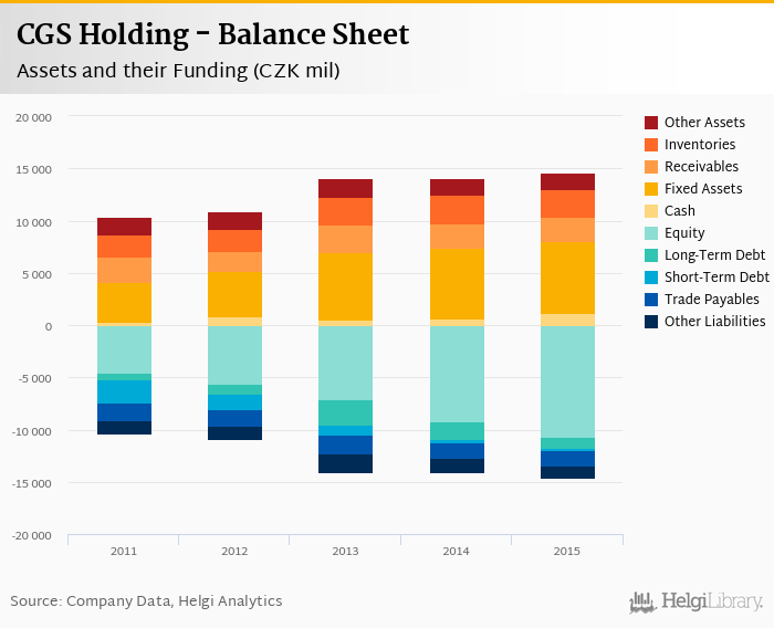 CGS Holding's total assets reached CZK 14,595 mil at the end of 2015, up 3.56% compared to the previous year.