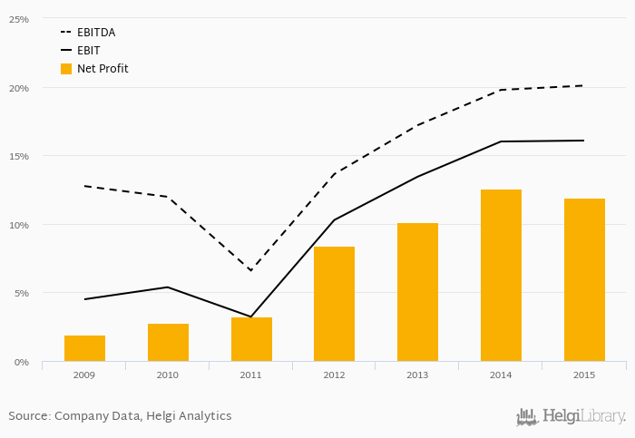 On the operating level, the EBITDA margin reached 20.1% and EBIT amounted to 16.1% of sales in 2015.