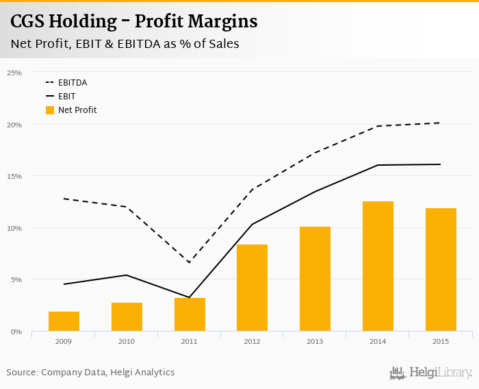 CGS Holding made a net profit of CZK 1,940 mil with revenues of CZK 16,269 mil in 2015, down by 8% and down by 3.18%, respectively, compared to the previous year.