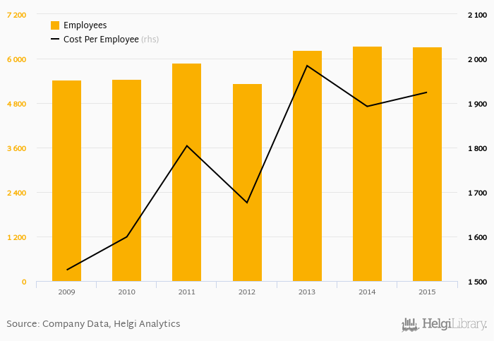 CGS Holding employed 6,322 employees in 2015, down 0.472% compared to the previous year. Historically, between 2001 and 2015, the firm's workforce hit a high of 6,538 employees in 2002 and a low of 5,331 employees in 2012.