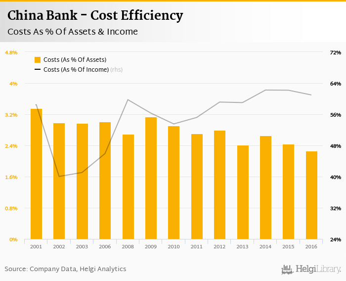 China Bank's cost to income ratio reached 61.0% in 2016, down from 62.2% compared to the previous year.