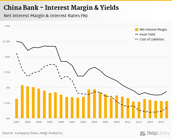 Historically, the bank’s net interest margin reached an all time high of 5.39% in 1992 and an all time low of 2.69% in 2013. The average margin in the last five years amounted to 2.94%.