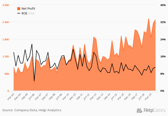 The bank generated its shareholders an average return on equity of 10.0% in the last five years with maximum at 13.1% and minimum at 7.19%.