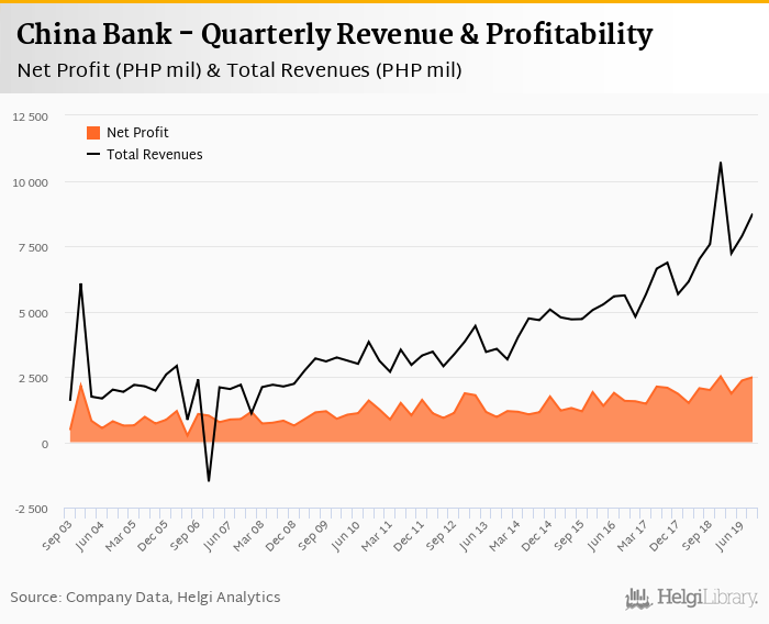 China Bank made a net profit of PHP 2,483 mil under revenues of PHP 8,740 mil in the third quarter of 2019, up 24.6% and 15.4% respectively when compared to the same period last year.
