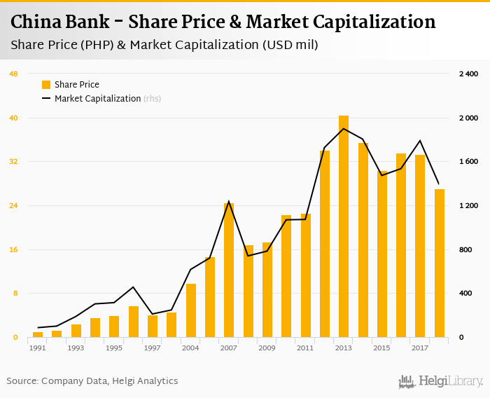 China Bank stock traded at PHP 27.1 per share at the end of 2018 implying a market capitalization of USD 1,389 mil.