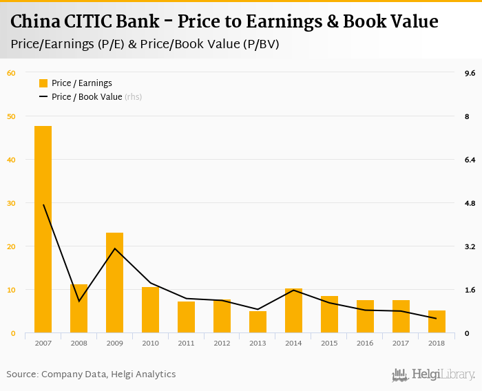 China CITIC Bank stock traded at HKD 4.18 per share at the end 2018 implying a market capitalization of USD 26,126 mil.