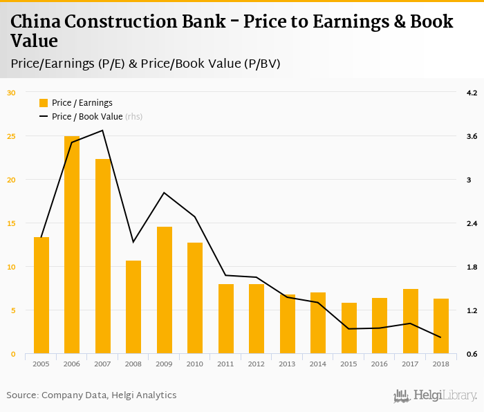 China Construction Bank stock traded at HKD 5.67 per share at the end 2018 implying a market capitalization of USD 181,149 mil.