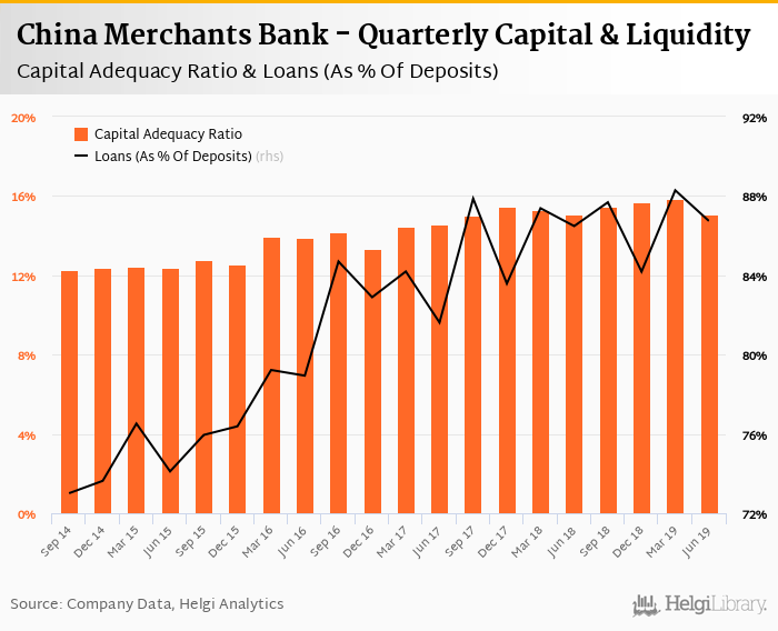China Merchants Bank's capital adequacy ratio reached 15.1% at the end of second quarter of 2019, down from 15.9% when compared to the previous quarter. Historically, the bank’s capital ratio hit an all time high of 15.9% in 1Q2019 and an all time low of 12.3% in 3Q2014.