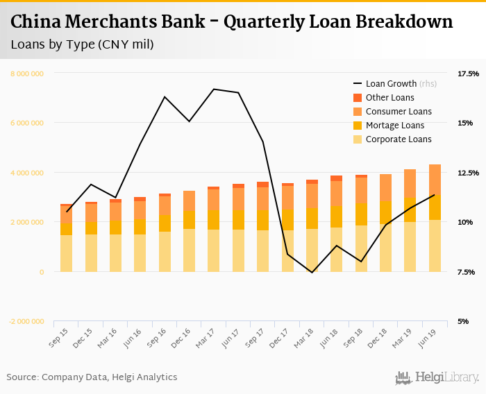 At the end of second quarter of 2019, China Merchants Bank's loans accounted for 86.7% of total deposits and 57.3% of total assets.