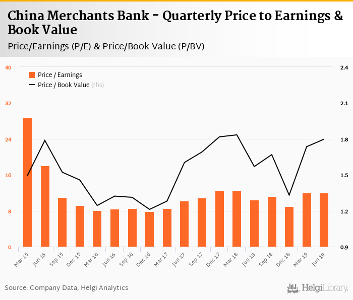 China Merchants Bank stock traded at HKD 36.0 per share at the end second quarter of 2019 implying a market capitalization of USD 116,186 mil.