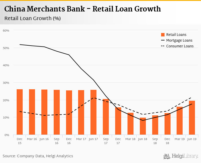 Mortgage loans rose 5.02% to CNY 1,027,000 mil in 2019-06-30 and accounted for 45.9% of the retail loan portfolio.