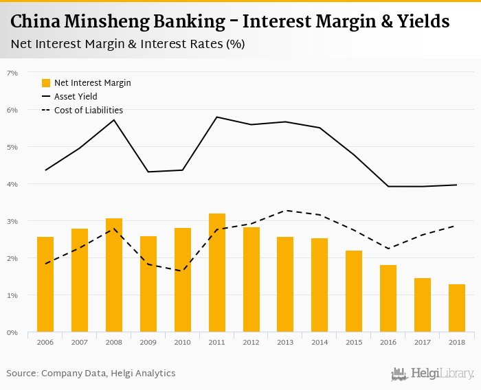 China Minsheng Banking's net interest margin amounted to 1.29% in 2018, down from 1.47% compared to the previous year.