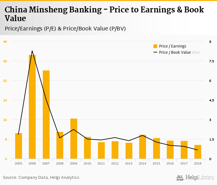 China Minsheng Banking stock traded at HKD 5.73 per share at the end 2018 implying a market capitalization of USD 32,040 mil.