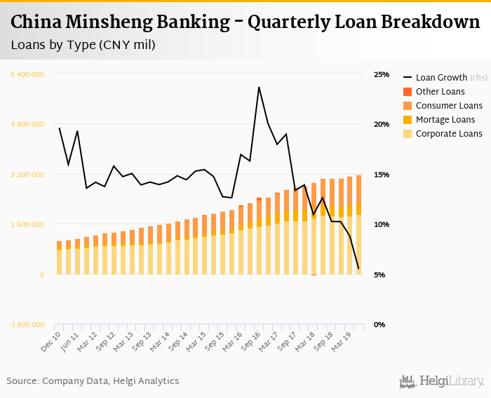 At the end of second quarter of 2019, China Minsheng Banking's loans accounted for 90.6% of total deposits and 49.4% of total assets.