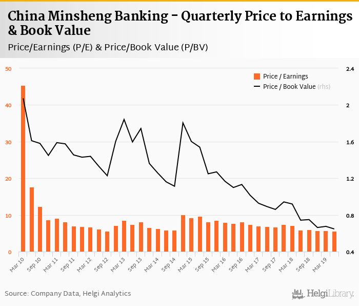China Minsheng Banking stock traded at HKD 6.35 per share at the end second quarter of 2019 implying a market capitalization of USD 35,599 mil.