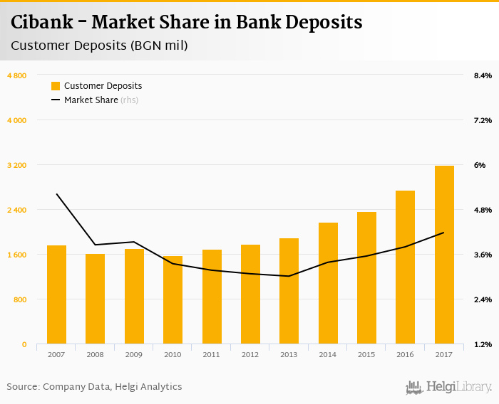 Cibank's customer deposits reached BGN 3,193 mil in 2017, up 16.6% compared to the previous year.