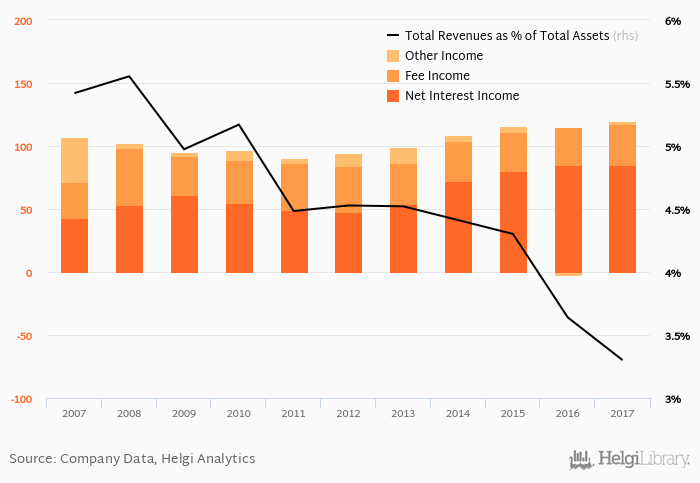 Bank's total revenues accounted for 3.30% total assets in 2017, down from 3.64% a year earlier.
