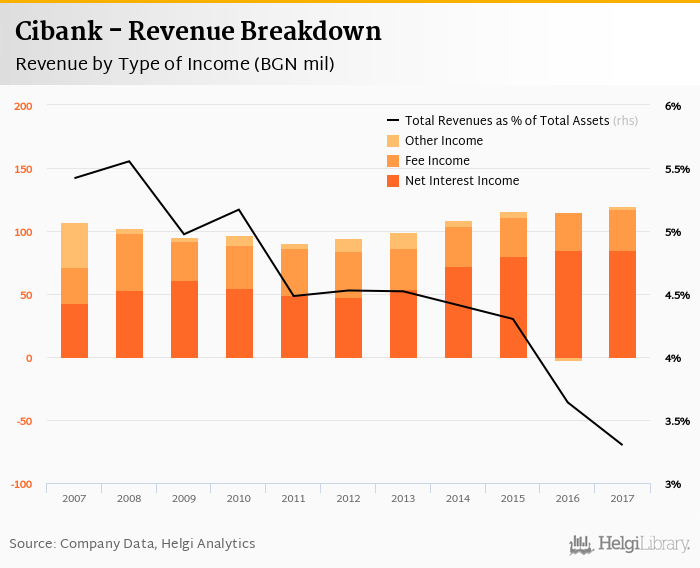 Cibank generated total banking revenues of BGN 119 mil in 2017, up 5.81% compared to the previous year.