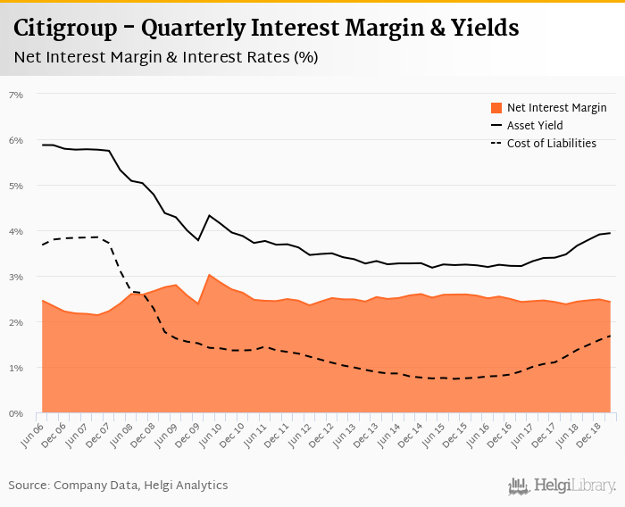 Citigroup's net interest margin amounted to 2.43% in the first quarter of 2019, down from 2.48% when compared to the previous quarter.