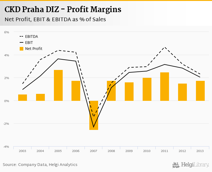 CKD Praha DIZ made a net profit of CZK 62.6 mil with revenues of CZK 3,594 mil in 2013, up by 41.3% and up by 22.3%, respectively, compared to the previous year.