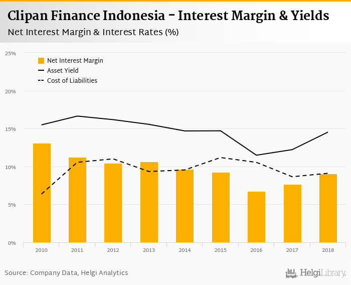 Clipan Finance Indonesia's net interest margin amounted to 9.07% in 2018, up from 7.65% compared to the previous year.