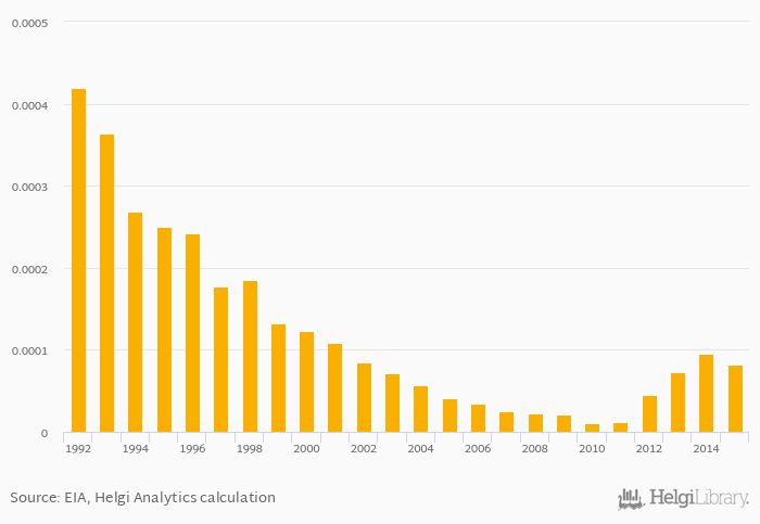 Historically, coal consumption as a share of worldwide consumption in Belarus reached an all time high of < 0.001% in 1992 and an all time low of < 0.001% in 2010. When compared to Belarus's main peers, coal consumption as a share of worldwide consumption in Lithuania amounted to < 0.001%, 0.017% in Poland, 0.027% in Russia and 0.005% in Ukraine in 2015.