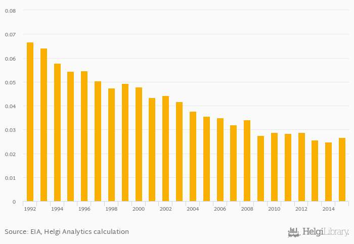 Historically, coal consumption as a share of worldwide consumption in Russia reached an all time high of 0.067% in 1992 and an all time low of 0.025% in 2014. When compared to Russia's main peers, coal consumption as a share of worldwide consumption in China amounted to 0.513%, 0.031% in Germany, 0.025% in Japan and 0.094% in USA in 2015.