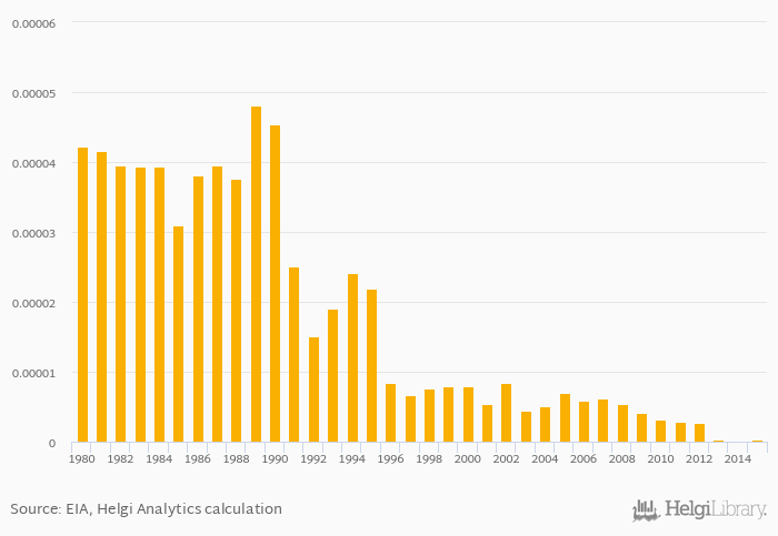 Historically, coal consumption as a share of worldwide consumption in Cuba reached an all time high of < 0.001% in 1989 and an all time low of < 0.001% in 2014. When compared to Cuba's main peers, coal consumption as a share of worldwide consumption in Dominican Republic amounted to < 0.001%, < 0.001% in Jamaica, 0.003% in Mexico and 0.094% in USA in 2015.