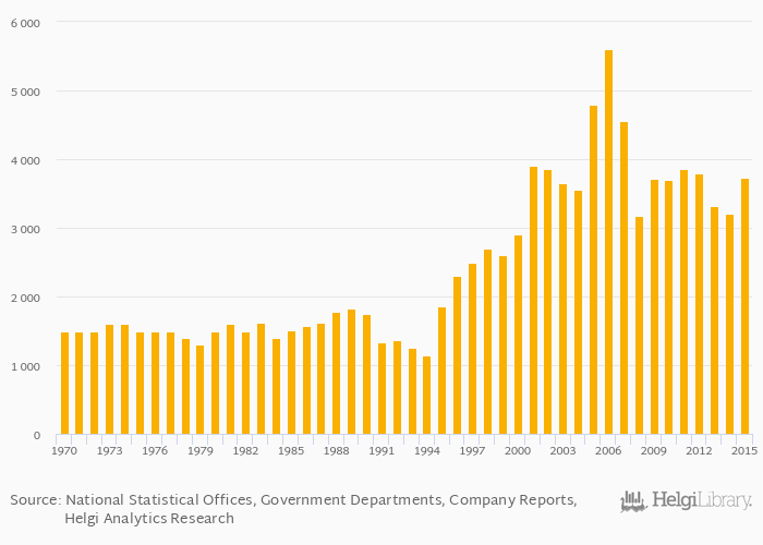 | China | tonnes | 6,003 | 6,382 | 6,843 | 7,498 | 8,580 | ||||||||||||||||