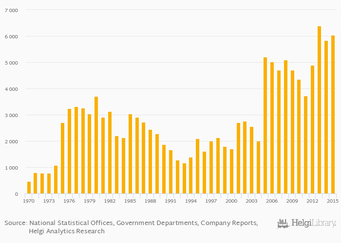 | Indonesia | tonnes | 650 | 1,600 | 3,200 | 3,600 | 4,700 | ||||||||||||||||