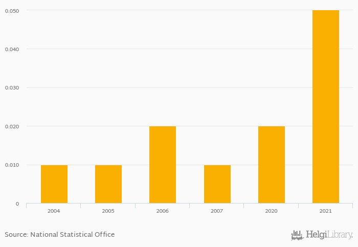 Historically, coconut consumption per capita in Kyrgyzstan reached an all time high of 0.050 kg in 2021 and an all time low of 0.010 kg in 2004.