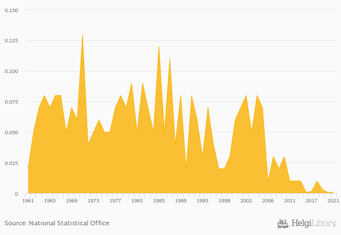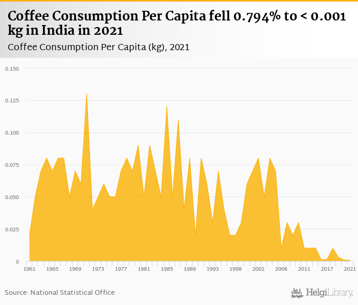Coffee consumption per capita fell 0.794% to < 0.001 kg in India in 2021, according to Faostat.