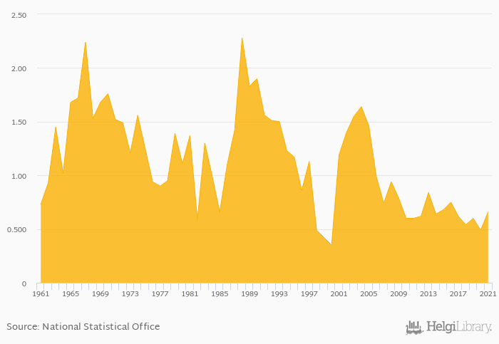Historically, coffee consumption per capita in Mexico reached an all time high of 2.28 kg in 1988 and an all time low of 0.350 kg in 2000. When compared to Mexico's main peers, coffee consumption per capita in Belize amounted to 16.2 kg, 1.01 kg in Guatemala, 2.98 kg in Honduras and 4.71 kg in USA in 2021.