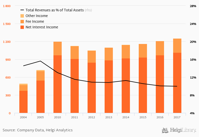 Bank's total revenues accounted for 9.96% total assets in 2017, down from 10.0% a year earlier.