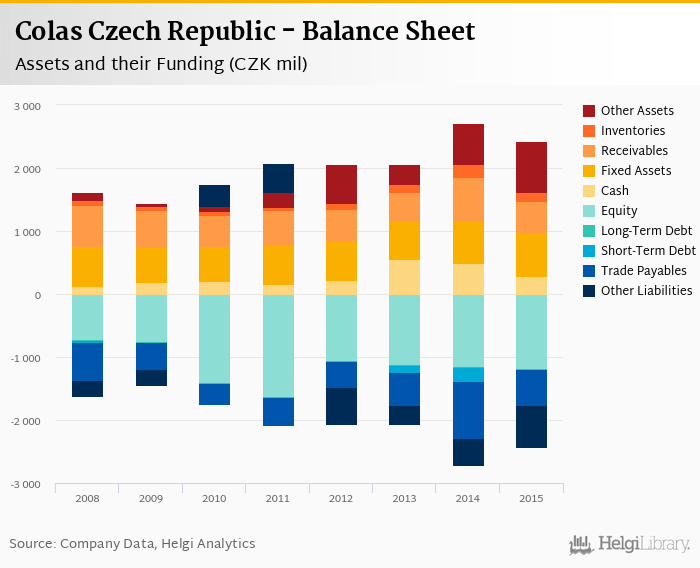 Colas Czech Republic's total assets reached CZK 2,433 mil at the end of 2015, down 10.2% compared to the previous year.
