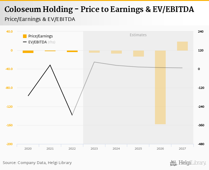 Coloseum Holding stock traded at CZK 244 per share at the end 2022 translating into a market capitalization of USD 8.43 mil.