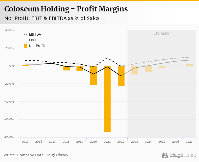 Coloseum Holding made a net profit of CZK -57.3 mil with revenues of CZK 253 mil in 2022, up by 47.6% and up by 74.4%, respectively, compared to the previous year.